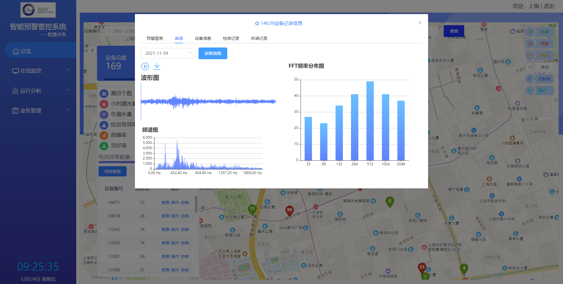 在此次寒潮到來(lái)之際,由山科智能開發(fā)的管網(wǎng)滲漏預(yù)警系統(tǒng)在上海城投水務(wù)的管網(wǎng)檢查中起到了重要作用。系統(tǒng)及時(shí)報(bào)警微小漏點(diǎn)后,經(jīng)過(guò)工作人員搶修,降低進(jìn)一步漏水或爆管的風(fēng)險(xiǎn),做到精準(zhǔn)判別管網(wǎng)暗漏,實(shí)現(xiàn)寒潮期間居民平穩(wěn)供水。