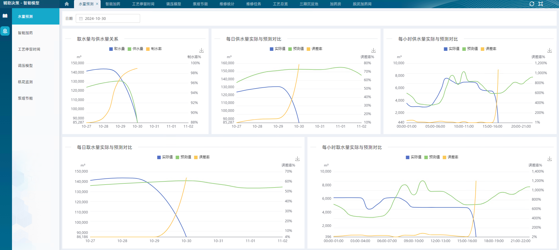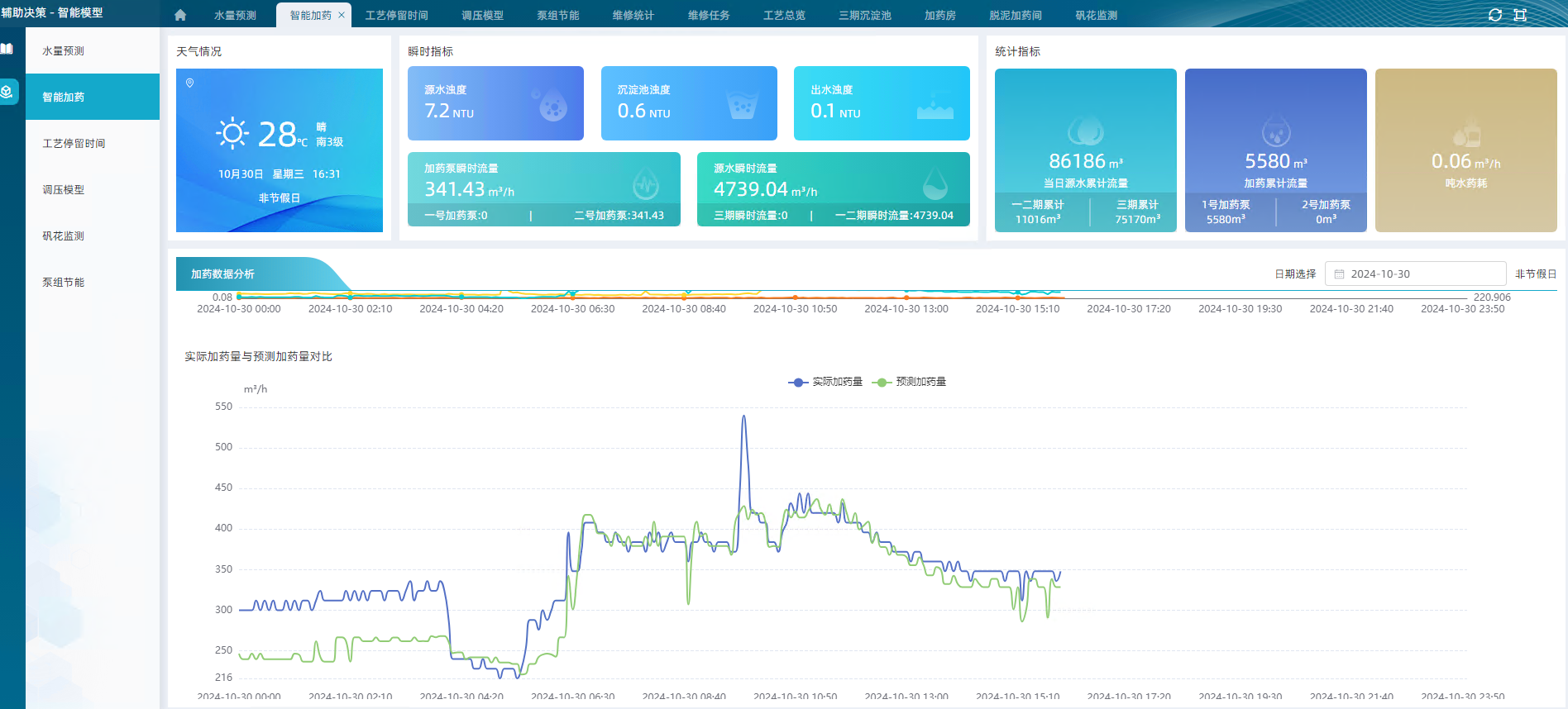 以多維度統(tǒng)計(jì)圖表的方式展現(xiàn)績(jī)效結(jié)果,識(shí)別凈水廠運(yùn)行管理薄弱環(huán)節(jié),為水廠運(yùn)行管理優(yōu)化提供豐富的數(shù)據(jù)展示企業(yè)門(mén)戶(hù)和決策支持,使得管理者的決策更加綜合、合理、可行,形成智能化、科學(xué)化決策,為全廠可視化、精細(xì)化、智慧化運(yùn)營(yíng)提供數(shù)據(jù)依據(jù)和強(qiáng)有力的支撐。