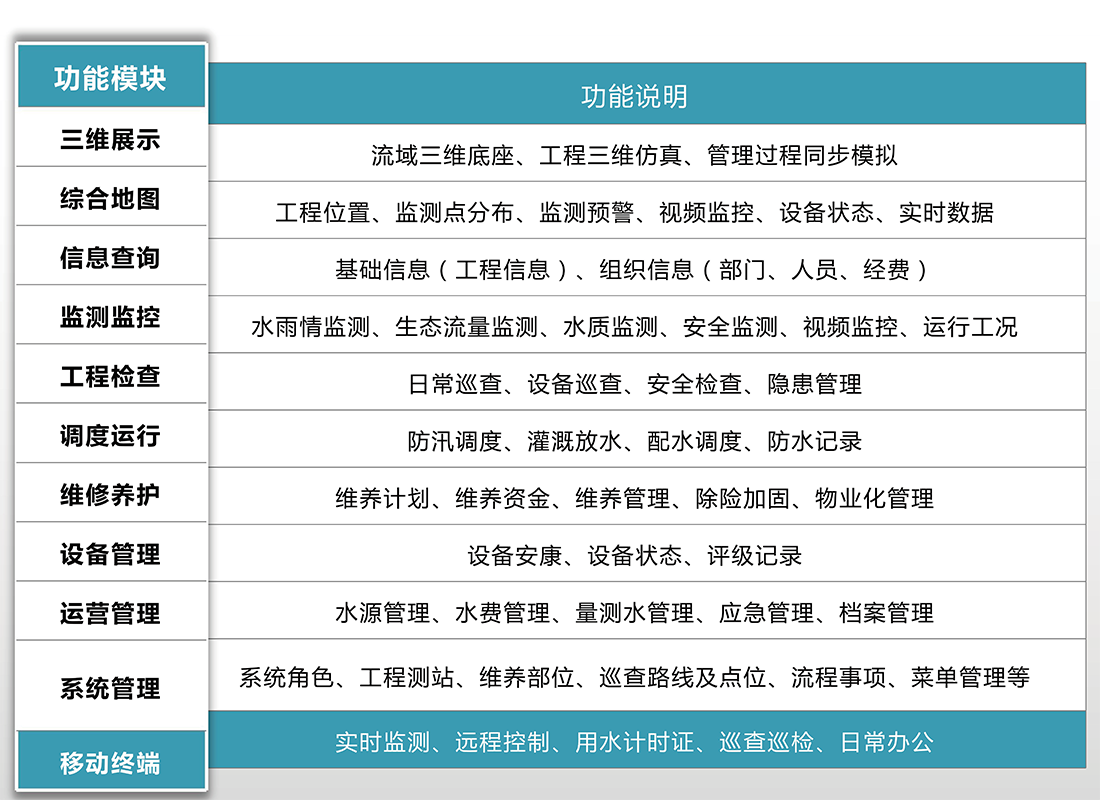 系統(tǒng)依托PLC、IOT等數(shù)字化技術(shù),從PLC到信息化實現(xiàn)全鏈路解決方案,實現(xiàn)水利工程信息化集成、信息化運營。轉(zhuǎn)變水庫、水閘、泵站、堤防、山塘、灌區(qū)、水站、供水廠等水利工程日常管理模式,覆蓋工程狀況、安全管理、運行管護、管理保障和信息化建設(shè)等5大建設(shè)需求。